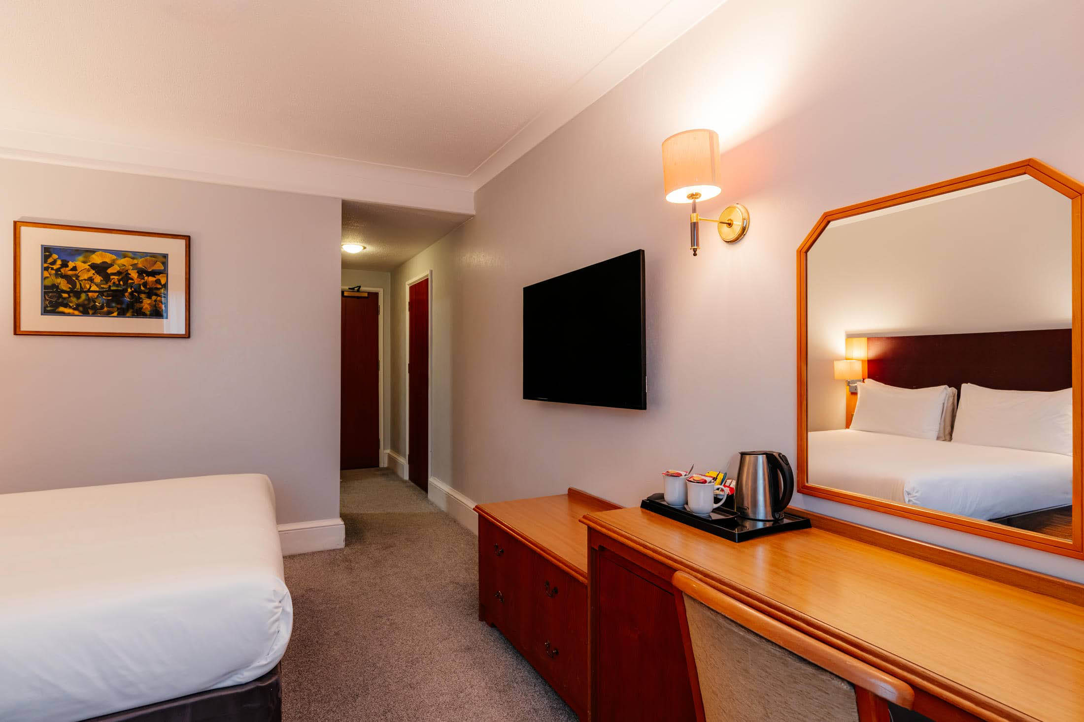 Our classic double room offers a warm and comfortable space designed for both relaxation and practicality. Featuring a cosy double bed, contemporary décor and soft lighting, the room provides a peaceful retreat after a busy day. Enjoy convenient amenities including complimentary Wi-Fi, a flat-screen TV, workspace, and tea and coffee facilities. Perfect for couples, solo travellers or business guests, the classic double combines comfort and value for a welcoming stay in the heart of Daventry.